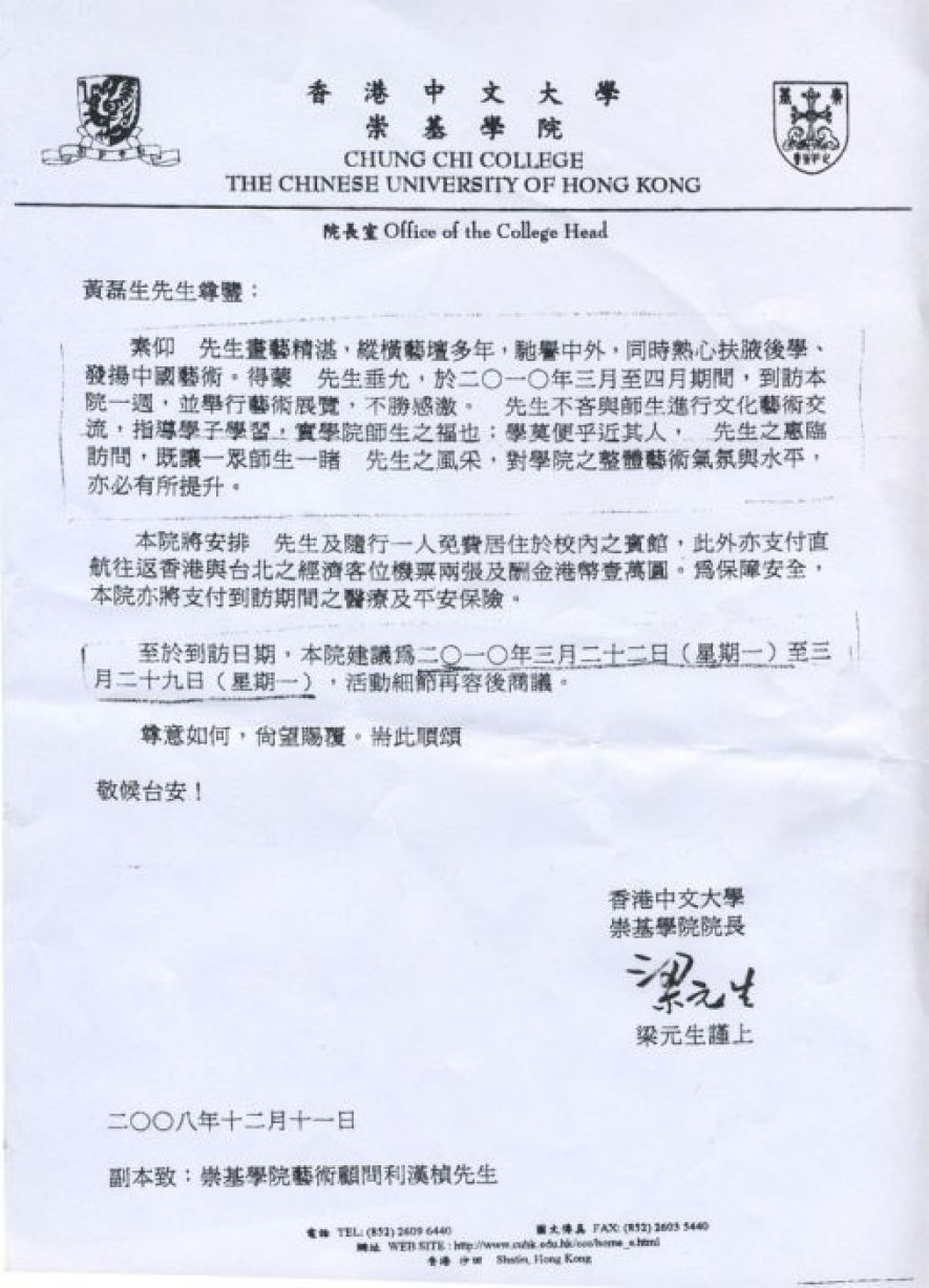 香港中文大學崇基學院邀請函 香港中文大學崇基學院邀請函